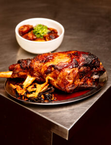 Perna de borrego assada com arroz de forno